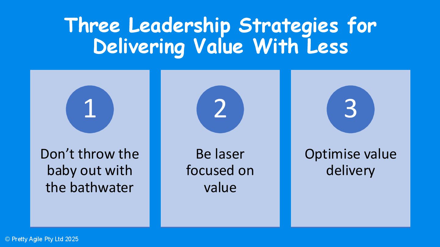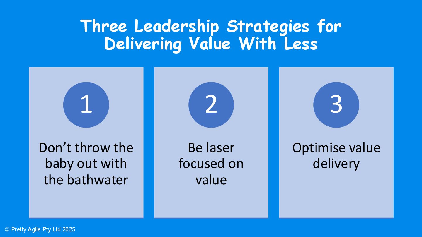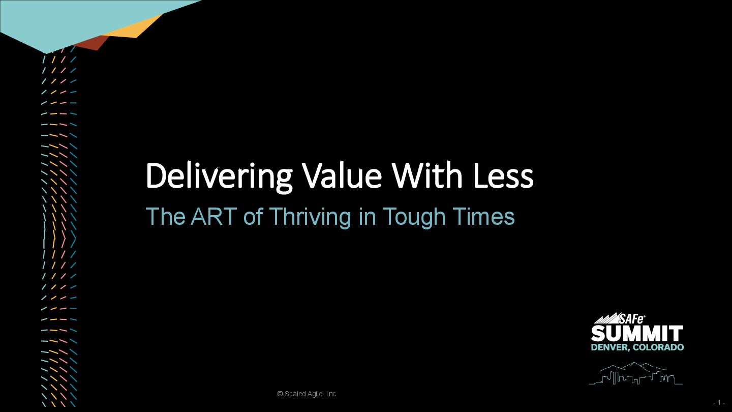 This session was presented at the SAFe Summit Denver 2025. It introduced three leadership strategies for delivering value with fewer resources and reinforced the message not to discard practices that support long-term performance.