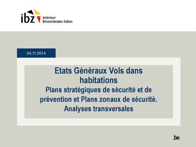 PZS 2014-2017 Sécurité routière – 194 zones Cambriolages dans les habitations et autres bâtiments – 175 zones Délits contre la propriété et itinérants – 148 zones Sécurité routière – 173 zones Nuisances et criminalité de rue - 119 zones Nuisances sociales – 161 zones Drogues - 115 zones Drogues, en particulier l'importation et l'exportation de cocaïne, la production et le trafic de drogues synthétiques et de cannabis, et la vente de stupéfiants (‘dealing’) – 121 zones Violence intrafamiliale et conjugale – 65 zones Violence intrafamiliale et violence contre les femmes – 66 zones Criminalité juvénile – 45 zones Violence dans l'espace public, en particulier dans les transports en commun et par des bandes urbaines – 33 zones Violence grave - 19 zones Vols à main armée – 28 zones Environnement grave - 18 zones Traite des êtres humains (l’exploitation sexuelle, l’exploitation économique) et le trafic d’êtres humains – 15 zones Traite et TEH – 13 zones Fraude, en particulier la fraude sociale, la fraude fiscale et la fraude dans la gestion des déchets – 15 zones Terrorisme – 12 zones Terrorisme – 11 zones Ecofin grave – 3 zones Criminalité informatique – 5 zones Criminalité ICT grave – 0 zone Trafic illégal des armes à feu – 3 zones
