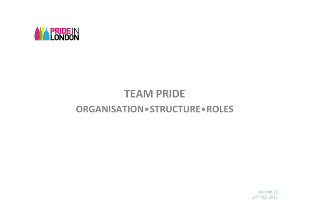 COORDINATION SUPPORT KIRSTY WILKINS SENIOR MANAGER COORDINATION SUPPORT PAUL HANSON, SIOBHAN LINARD UNDERBELLY DEPUTISES FOR DIRECTOR EVENT CONTROL PAUL HANSON, CHRIS VARNEY LICENSING SIOBHAN LINARD, UNDERBELLY ACCESS MATT KENT JEFF TONG, TANYA KYNASTON RBL JOSEPH WILLIAMS, GRAHAM LEHR PLANNING & LOGISTICS PETE MANLEY, MATT KENT PARADE ADAM ENDACOTT PARADE ROUTE TROUBLESHOOTING KIRSTY WILKINS, SIOBHAN LINARD BARS LIAISON NICOLA CHUBB TRAFALGAR SQUARE MARTIN HUTCHINSON SOHO HEIDI TONKIN, MARTIN FOX-‐ ROBERTS STAGES IAN MASSA-‐HARRIS TOM KNIGHT, SANDRA DAVENPORT ARTS FESTIVAL DUNCAN DAY PRIDE 2016 PLANNING TBA VAUXHALL PETE MANLEY CLOSE LIAISON WITH TEAM PRIDE & ORGANISATION TEAM