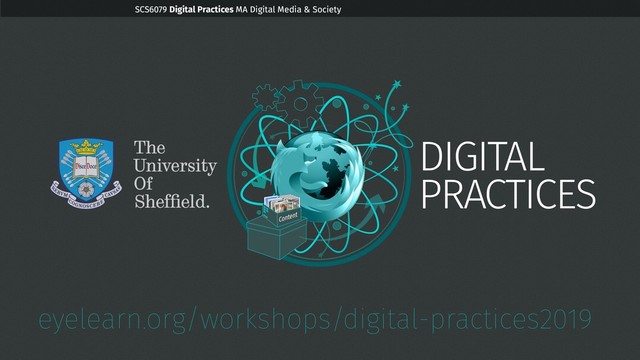 Provided by the University, accessible on campus or via VPN from outside (see CiCS instructions for details). URL / website address ma-dms.sheffield.ac.uk/digp + your unique number admin / WordPress login ma-dms.sheffield.ac.uk/digp##/wp-admin eyelearn.org/workshops/digital-practices2019