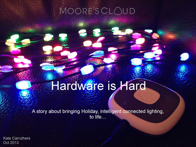 March 2013 refocus to bring new product to market Holiday lighting $10B/year global market MooresCloud seeks to capture 1% of market within 5 years Design concept - February 2013