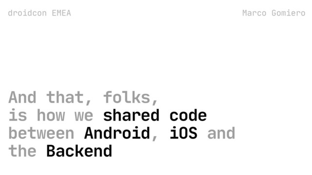 In this talk, I will share the discussion that led us to Kotlin Multiplatform, and the following processes we put in place to start using it in production for an Android, iOS, and backend project. I will show you what parts of the code you can (gradually) start to share and how to integrate with existing standalone projects.