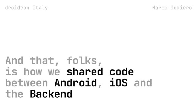 In this talk, I will share the discussion that led us to Kotlin Multiplatform, and the following processes we put in place to start using it in production for an Android, iOS, and backend project. I will show you what parts of the code you can (gradually) start to share and how to integrate with existing standalone projects.
