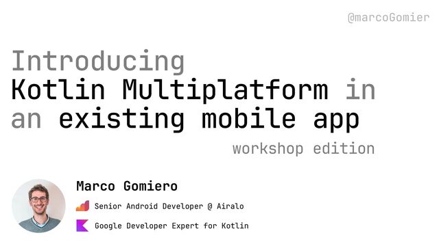 Website: marcogomiero.com > Mastodon: androiddev.social/@marcogom Marco Gomiero Senior Android Developer @ Airalo Google Developer Expert for Kotlin