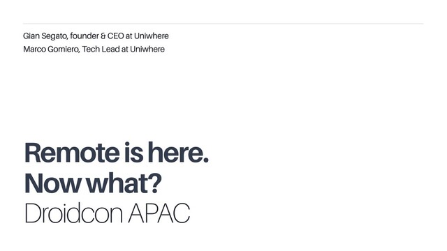 Remote is here. Now what? | droidcon APAC