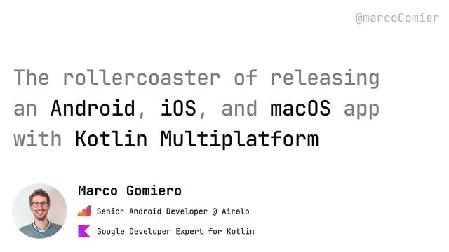 Website: marcogomiero.com > Mastodon: androiddev.social/@marcogom Marco Gomiero Senior Android Developer @ Airalo Google Developer Expert for Kotlin
