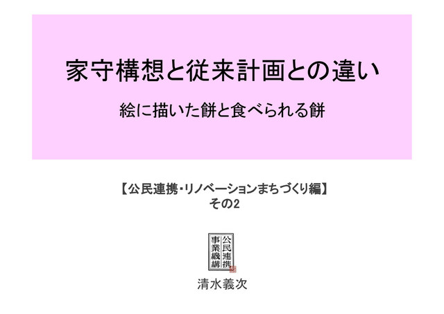 家守構想と従来計画との違い 絵に描いた餅と食べられる餅 清水義次 【公民連携・リノベーションまちづくり編】 その2