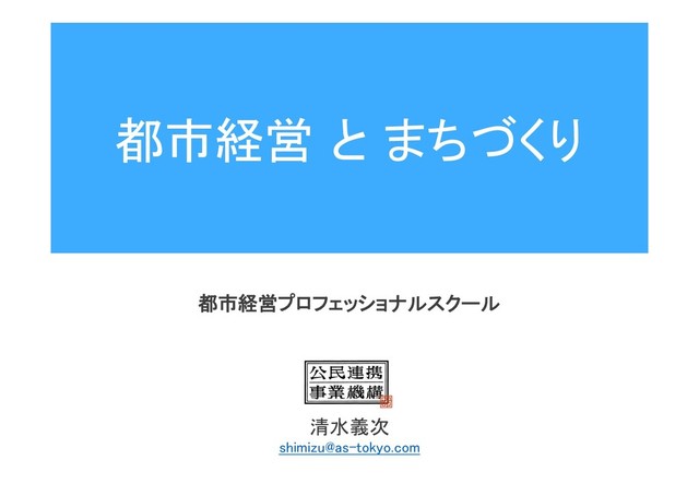 都市計画にもとづいて税金を 投資してまちを変えて行く という従来のやり方から