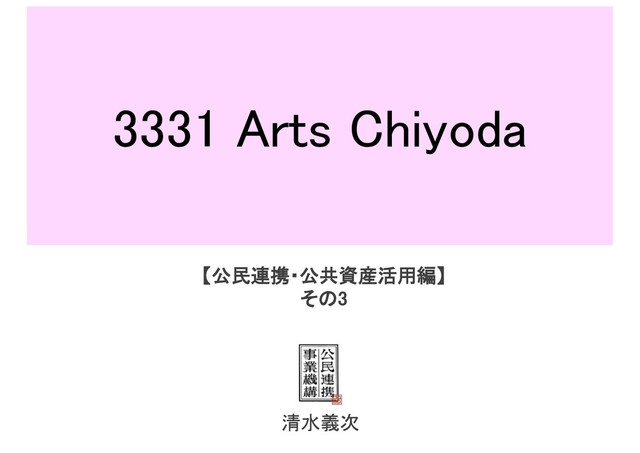 ちよだアートスクエア実施委員会 2006年(H18)12月設置 ちよだアートスクエアについて 区長へ答申 2007年(H19)12月28日 コマンドA 第一候補団体決定 2008年(H20)9月 施設整備及び運営に関する 協定書締結2009年(H21)5月 賃貸借契約締結(5年間定借) 建築確認許可 第1期改修工事開始 2009年(H21)10月 プレオープン 2010年(H22)3月 グランドオープン 2010年(H22)6月 第1期改修工事終了 2010年(H22)2月 千代田区文化芸術プラン 2010年年度(H22)策定 第2次 ちよだアートスクエア・重点事業