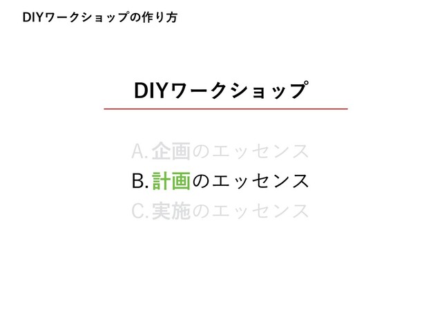 %*:ϫʔΫγϣοϓ "اըͷΤοηϯε #ܭըͷΤοηϯε $࣮ࢪͷΤοηϯε %*:ϫʔΫγϣοϓͷ࡞Γํ