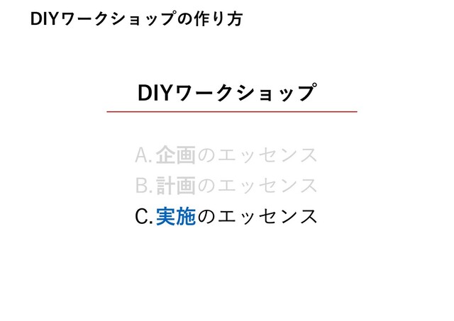 %*:ϫʔΫγϣοϓ "اըͷΤοηϯε #ܭըͷΤοηϯε $࣮ࢪͷΤοηϯε %*:ϫʔΫγϣοϓͷ࡞Γํ
