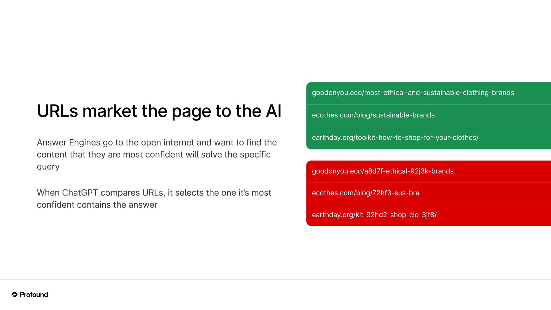 to the AI Answer Engines go to the open internet and want to find the content that they are most confident will solve the specific query When ChatGPT compares URLs, it selects the one it’s most confident contains the answer
