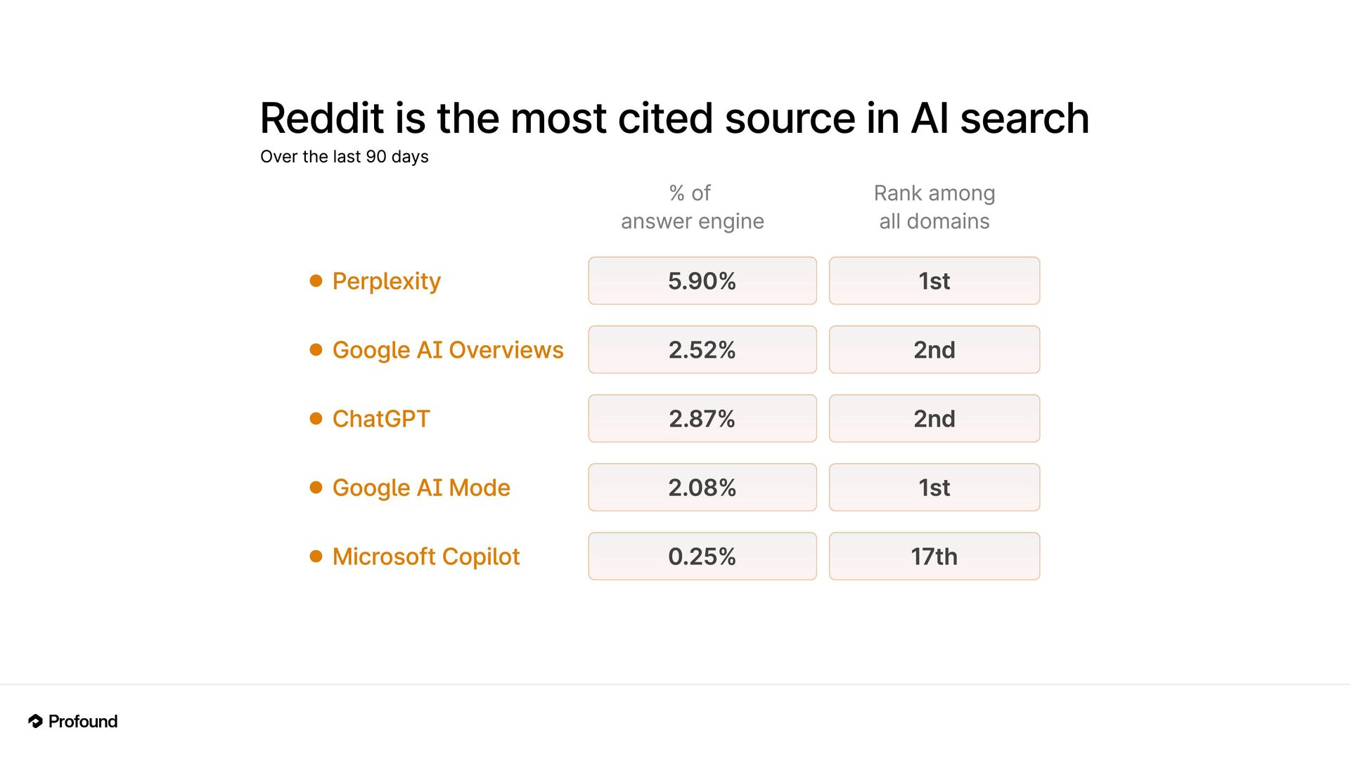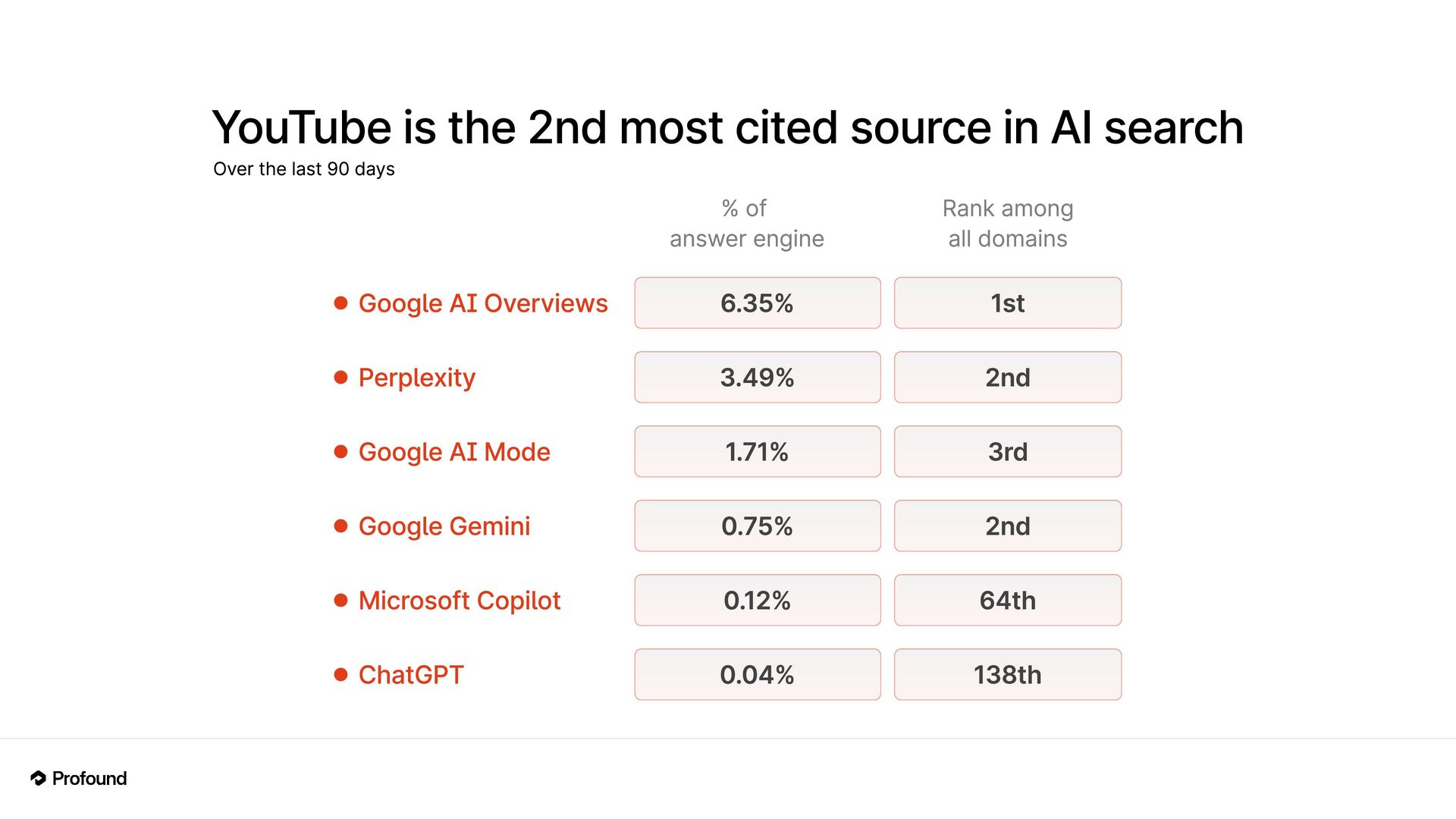 It’s no surprise their citation share is so high 2 0 4 6 8 Perplexity 5.27% Transcript Access Google AI Overviews 4.08% Transcript Access Google AI Mode 1.01% Transcript Access Google Gemini 0.75% Transcript Access ChatGPT 0.02% Transcript Access