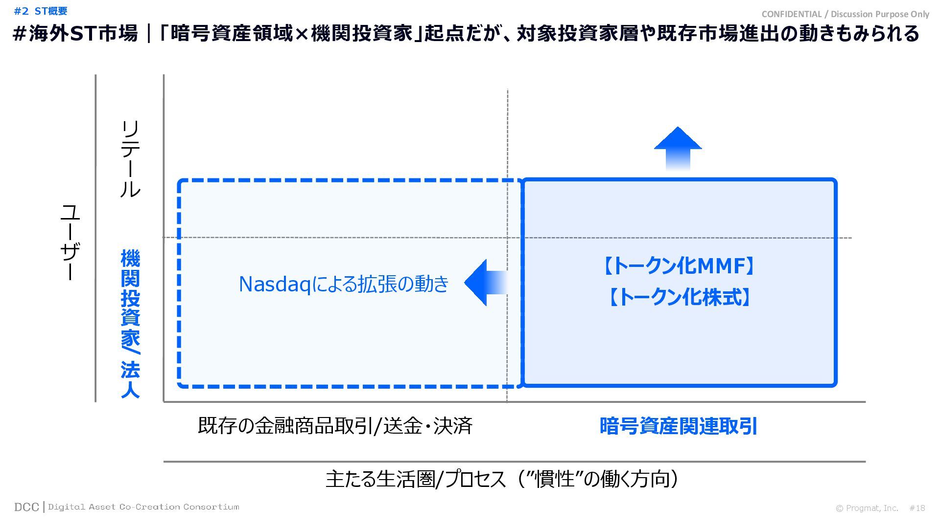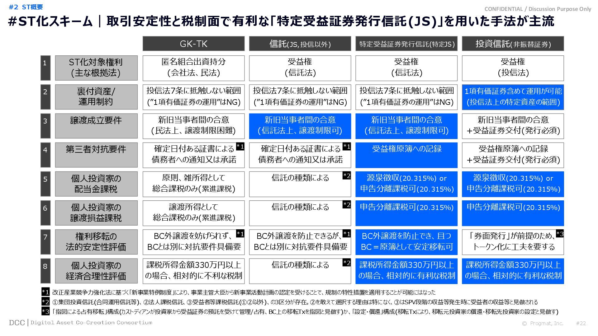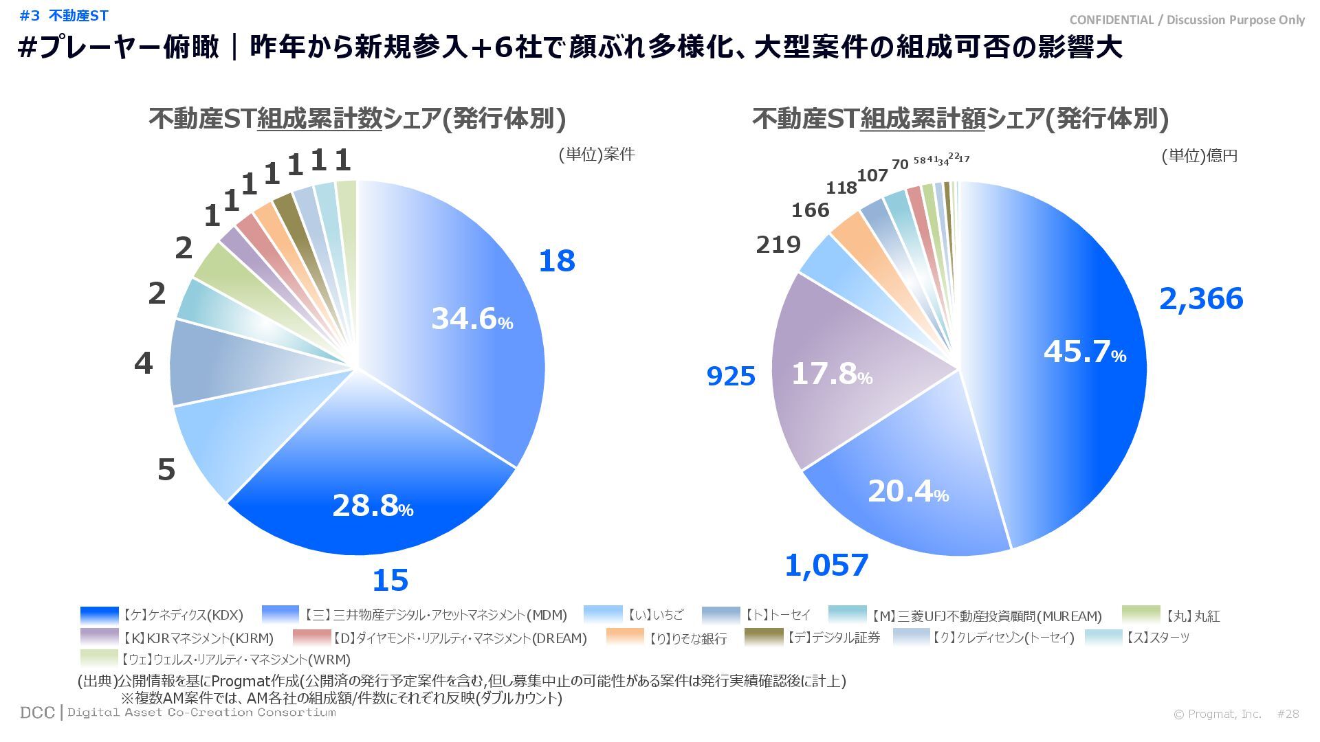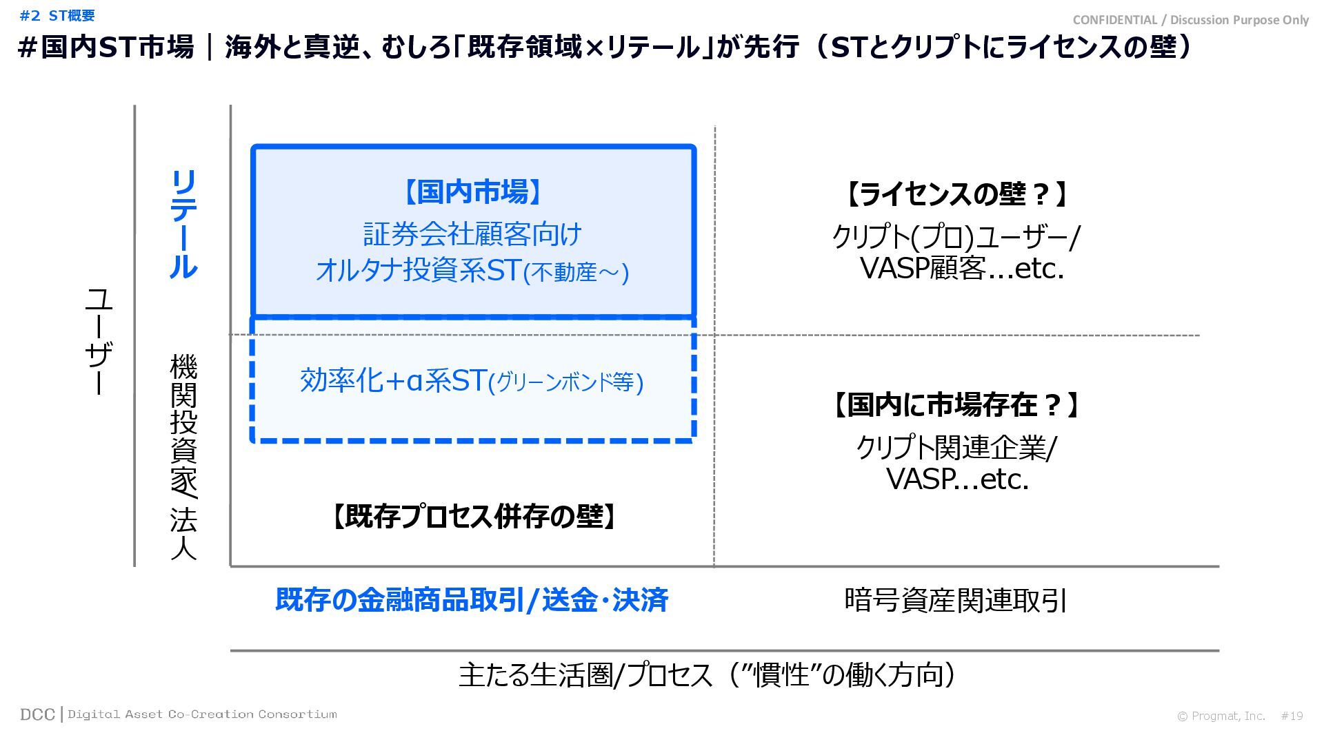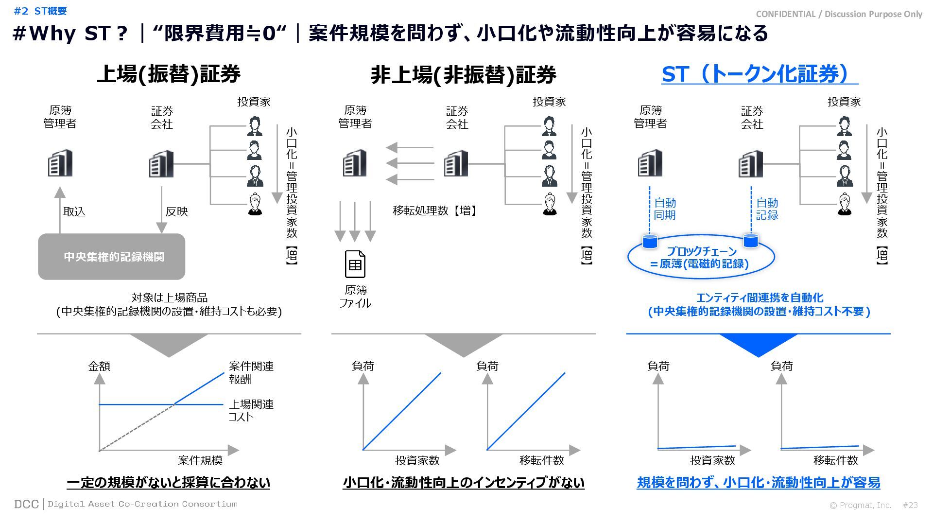 15 33 51 0 10 20 30 40 50 60 70 80 90 100 0 500 1,000 1,500 2,000 2,500 3,000 3,500 4,000 4,500 5,000 5,500 6,000 4 5 6 7 8 9 101112 1 2 3 4 5 6 7 8 9 101112 1 2 3 4 5 6 7 8 9 101112 1 2 3 4 5 6 7 8 9 101112 1 2 3 4 5 6 7 8 9 101112 2021 2022 (単位)億円 2023 ST案件残高(公開案件)|SRS上のB/S資産総額(償還=0へ) ST発行累計額(公開案件)|償還済案件含む ST案件累計数(公開案件)|償還済案件含む (出典)公開情報を基にProgmat作成(公開済の発行予定案件を含む,但し募集中止の可能性がある案件は発行実績確認後に計上) 2024 (単位)案件 2025 2,772億超 72案件 5,392億超 #20 © Progmat, Inc. #2 ST概要 #ST市場規模|ST案件残高:約5,392億、ST発行累計額:約2,772億、案件累計数:72案件