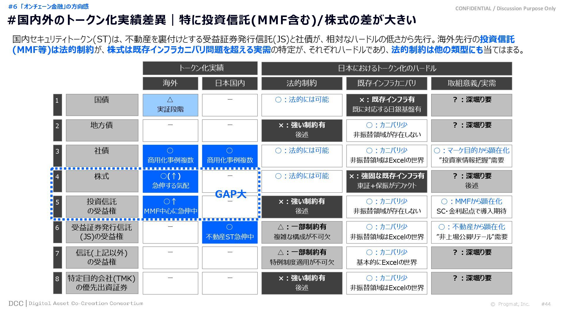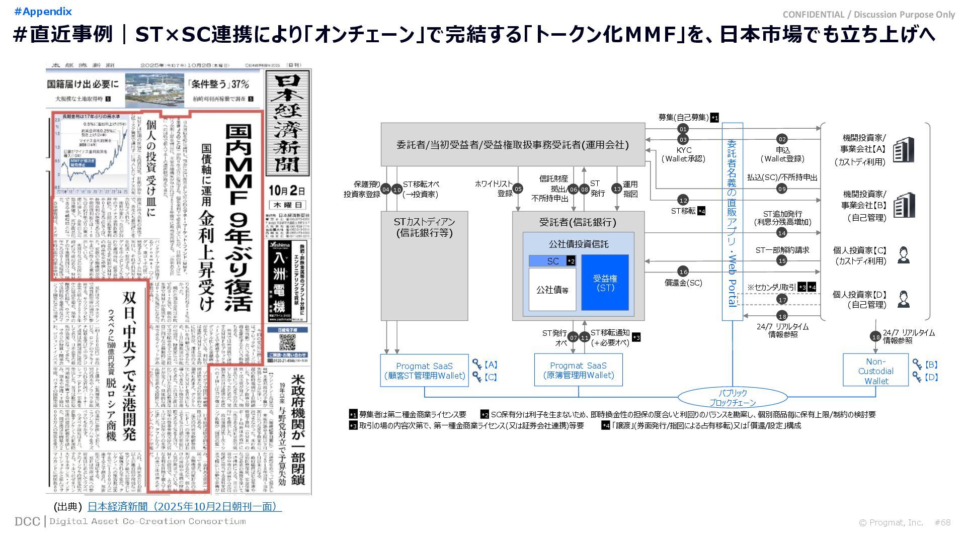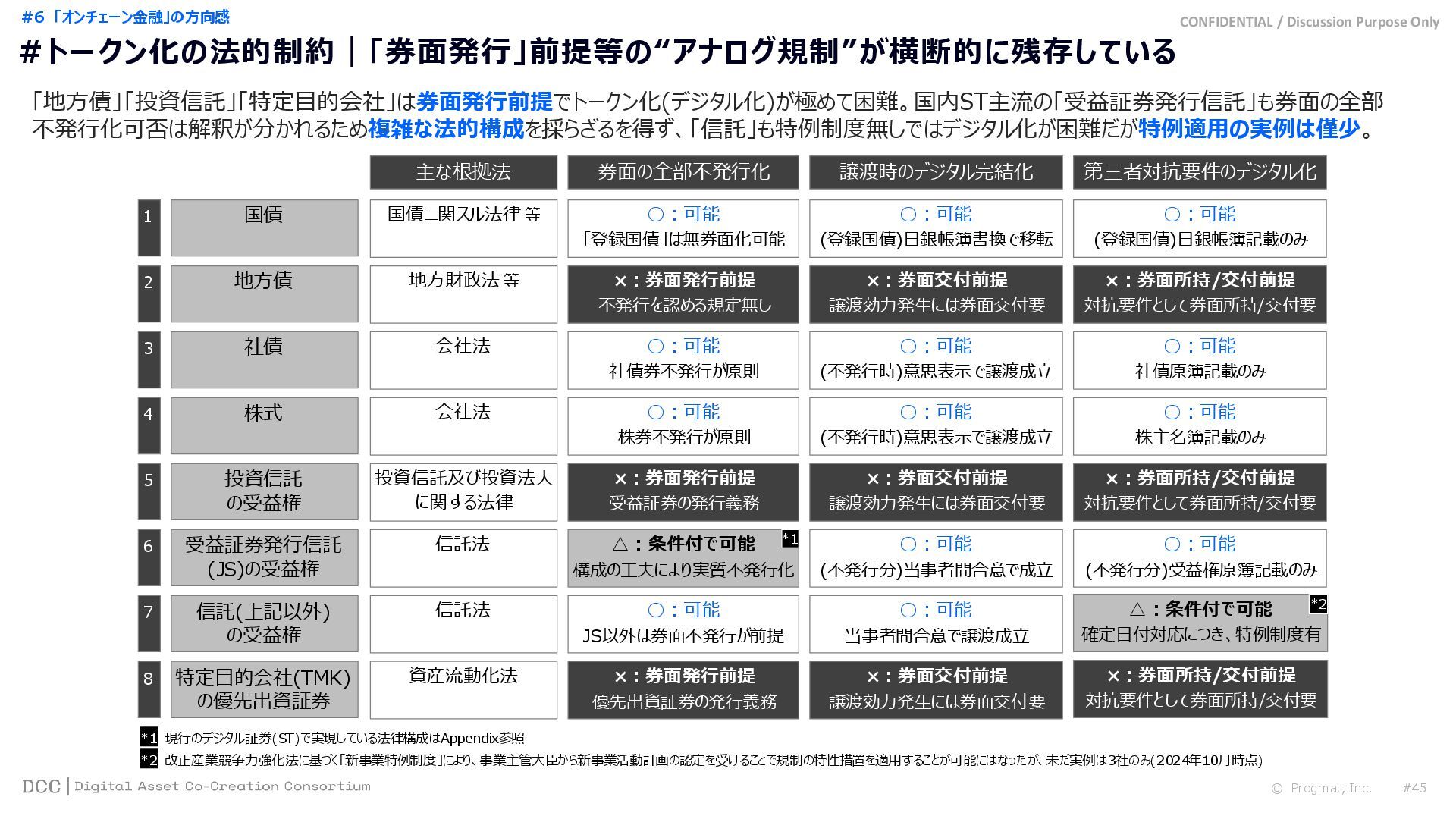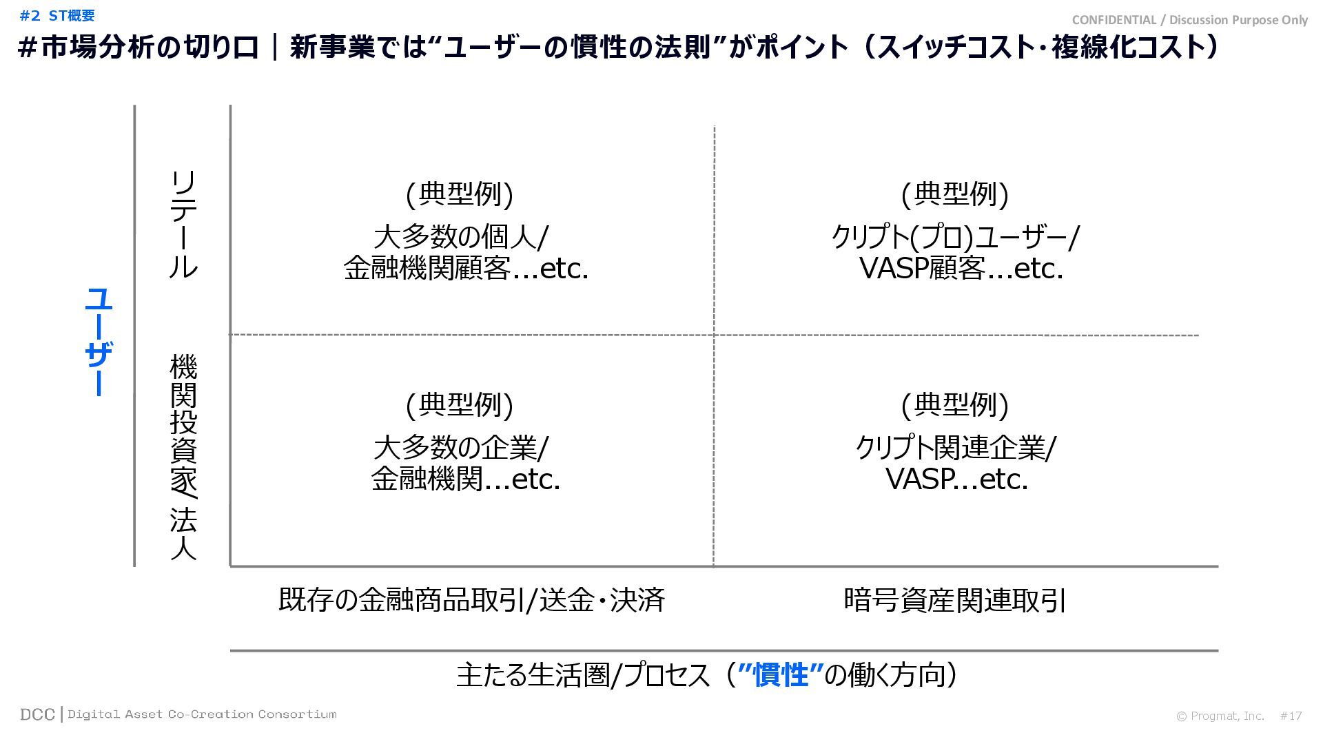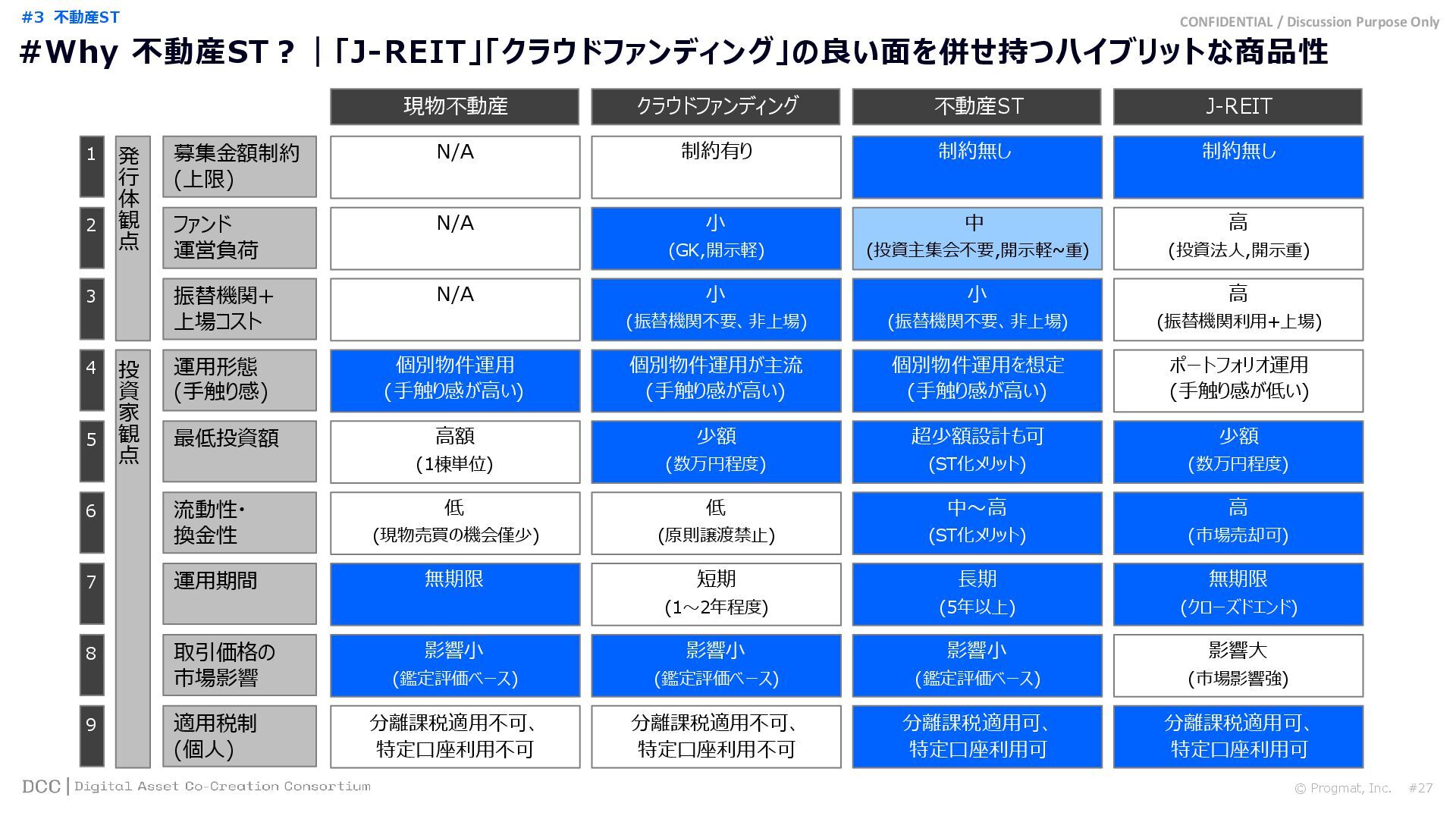 15 33 51 0 10 20 30 40 50 60 70 80 90 100 0 500 1,000 1,500 2,000 2,500 3,000 3,500 4,000 4,500 5,000 5,500 6,000 4 5 6 7 8 9 101112 1 2 3 4 5 6 7 8 9 101112 1 2 3 4 5 6 7 8 9 101112 1 2 3 4 5 6 7 8 9 101112 1 2 3 4 5 6 7 8 9 101112 2021 2022 (単位)億円 2023 ST案件残高(公開案件)|SRS上のB/S資産総額(償還=0へ) ST発行累計額(公開案件)|償還済案件含む ST案件累計数(公開案件)|償還済案件含む (出典)公開情報を基にProgmat作成(公開済の発行予定案件を含む,但し募集中止の可能性がある案件は発行実績確認後に計上) 2024 (単位)案件 2025 2,772億超 72案件 5,392億超 #20 © Progmat, Inc. #2 ST概要 #ST市場規模|ST案件残高:約5,392億、ST発行累計額:約2,772億、案件累計数:72案件