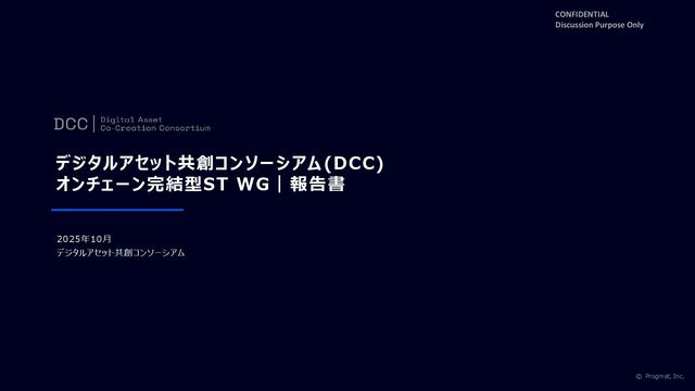 インフラ層 Ⅰ サービス層 Ⅱ Progmat, Inc.…「Core Developer」兼「コンソーシアム(DCC)事務局」 ST UT Coin DCC事務局 信託銀行 A 信託銀行 B 信託銀行 C 銀行 D 銀行 E 証券 F 証券 G エクスチェンジ H コア機能提供 利用料 & 各発行体 役務 対価 Service Developers 株主企業群=アライアンスパートナー 出資 利益還元 スピンアウト (独立化) DCC会員 による 分権運営 インフラ としての 中立的 資本構成 (競争領域) (共創領域) #1 Progmat/DCCと本WGの概要