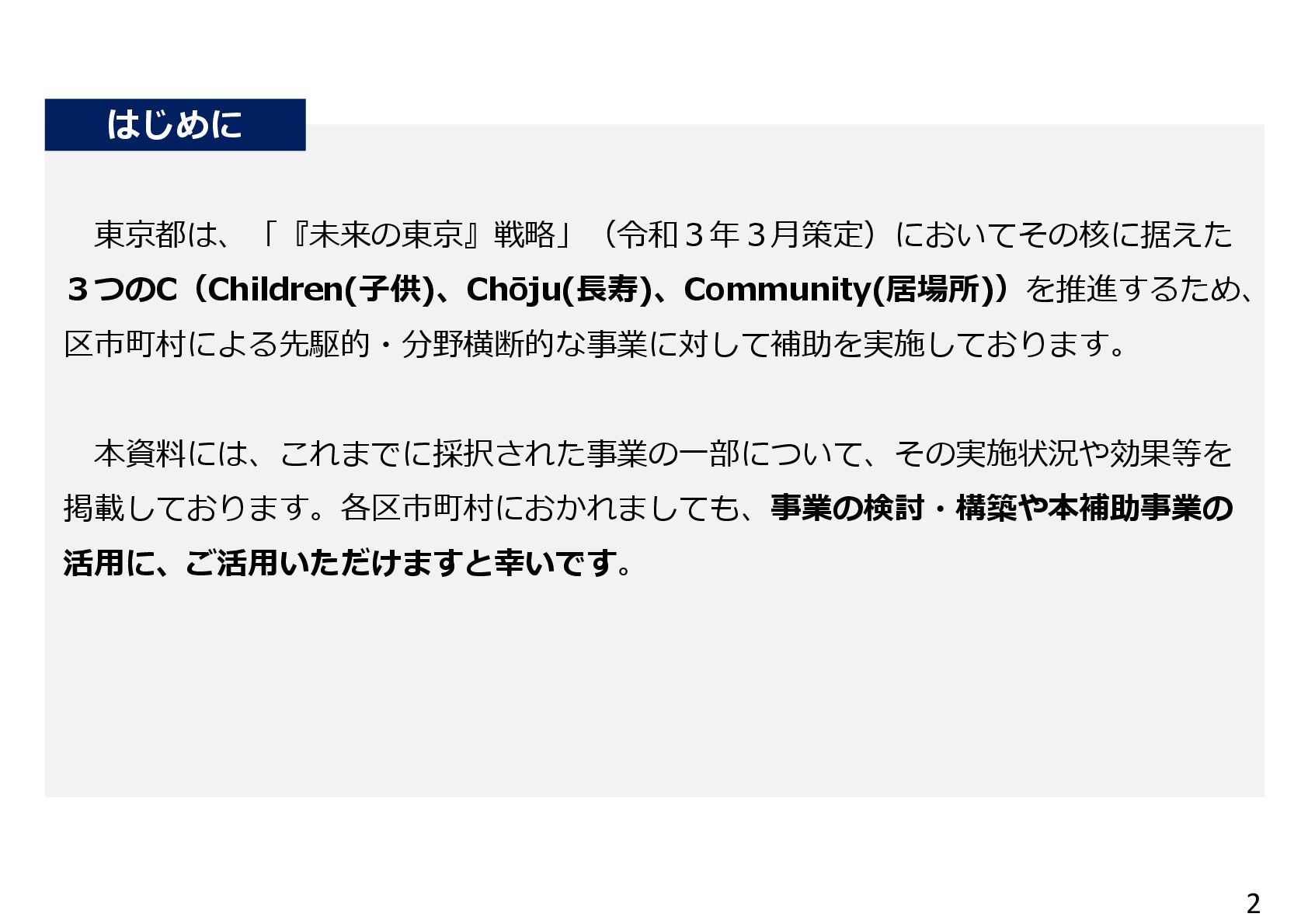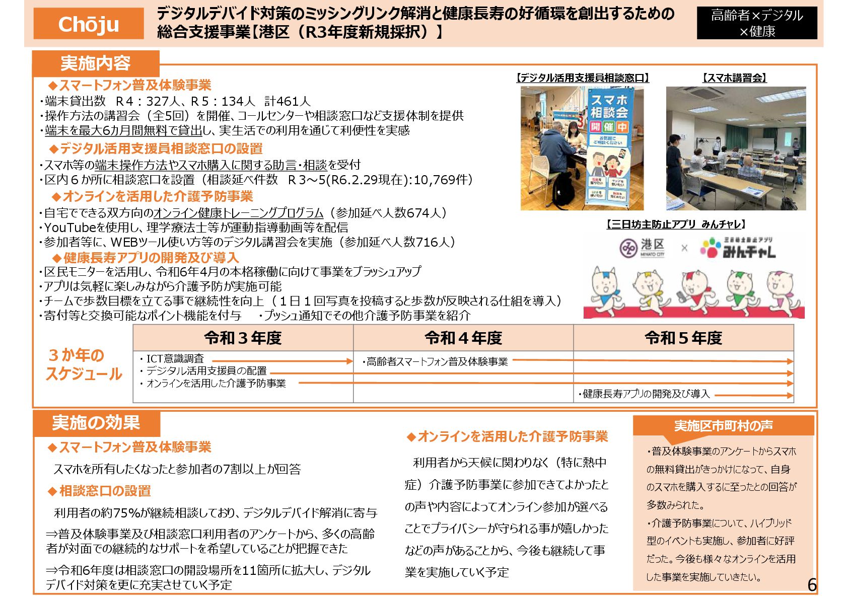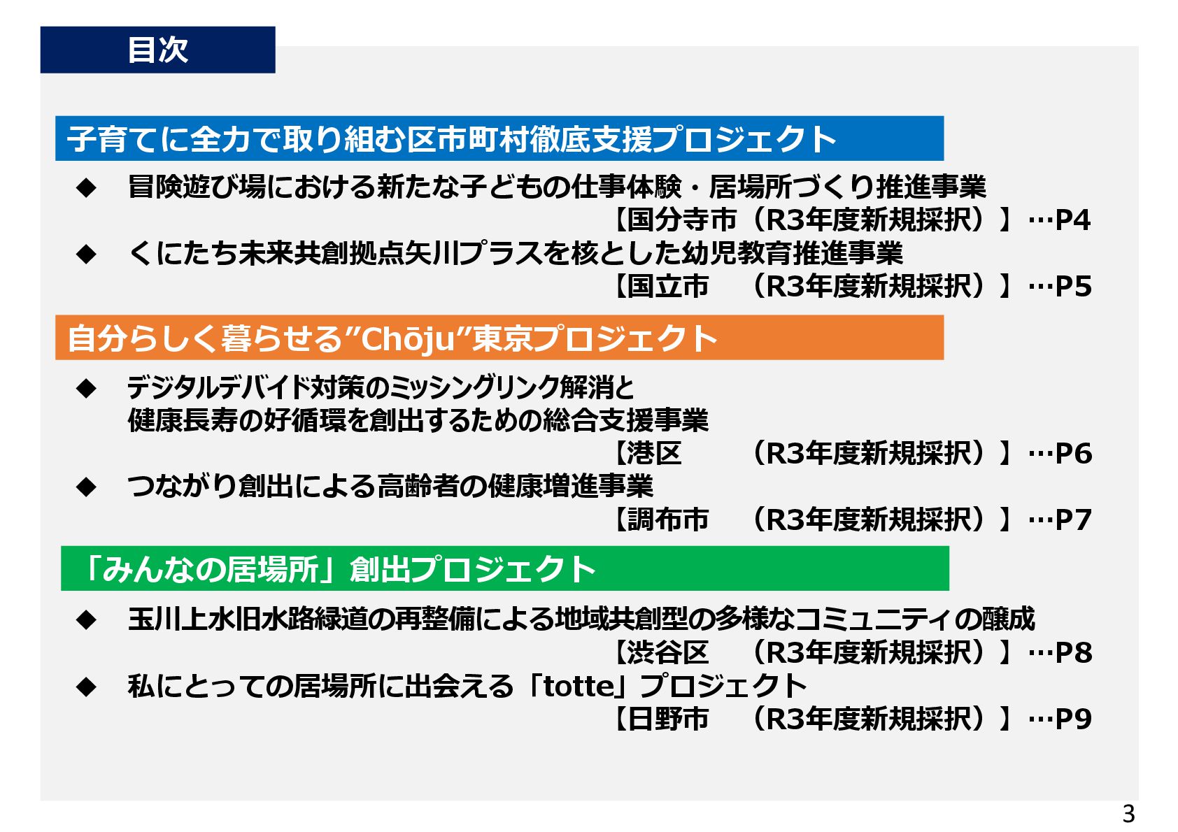 親子ひろばへの出張販売を通じて、乳幼児への読み聞かせ等の多世代交流が拡大 子供が店員とお客さんとして会話を楽しむようになり、駄菓子屋が子供の居場所に定着 ②親子がくつろげる「土日カフェ」の開設 • 土日に乳幼児親子の休息と交流のためのカフェを開設し、コーヒーや焼き菓子を提供 これまで来場が少なかった父親や高齢者の来場が増え、多世代交流・地域交流が進展 ③中学生・高校生のための「夕暮れカフェ」の開設 • 料理・楽器演奏などの体験活動やゲームなど、中高生が自由に過ごせるカフェを開設 不登校等の理由で孤立しがちな子供にスタッフが寄り添い、安心できる居場所に 3か年のスケジュール 実施区市町村の声 ・子ども会議 「販売する駄菓子を選びたい」 「店の名前を自分たちで決めたい」 ・子どもサポーター会議 「祭りをやりたい」 「店の壁に絵を描きたい」 ・夕暮れサポーター会議 「Wi-Fiを整備してほしい」 子供の意見を反映した取組 子供の声 ・子供たちの人気投票で、販売す る駄菓子や店の名前を決定 ・「だがプレまつり」を毎年開催 ・駄菓子屋の壁面に子供たちが 絵を描くイベントを開催 ・Wi-Fiを整備 取組内容 ①野外遊び場に駄菓子屋を開設 施設整備,子どもの意見収集 駄菓子屋の運営 夕暮れカフェ、土日カフェの運営 18,984 22,287 25,096 R2年度 R3年度 R4年度 3C補助を活用して駄菓子 屋や夕暮れカフェ等を開設し たところ、子供の社会参加や 多世代交流・地域交流促進 の契機となった。孤立しがちな 子供たちが素の自分でいられ る居場所であることを保証し ながら、他の支援機関とも連 携していきたい。 令和5年11月21日〜12月10日実施 回答数101名(小学生〜高校生) 冒険遊び場における新たな子どもの仕事体験・居場所づくり推進事業 【国分寺市(R3年度新規採択)】 仕事体験中の子供たち 補助の活用により、駄菓子屋やカフェを充実させ、仕事体験の 枠を超えた子供の社会参加の場として運営 子供たちが描いた壁画 対前年比 +3,303 対前年比 +2,809 【施設利用者数】 ・駄菓子屋やカフェを開設 したことで、冒険遊び場の 利用者数が2年連続で 大きく増加した。 【満足度】 ・冒険遊び場の利用者の 多くが仕事体験に参加し ており、そのほとんどが楽し みながら活動できている。 冒険遊び場利用者アンケート 「仕事体験はしましたか︖」 体験した 64% 体験 しなかった 36% 冒険遊び場利用者数の推移(人) 楽しかった 94% いいえ 6% 仕事体験利用者アンケート 「楽しかったですか︖」 4