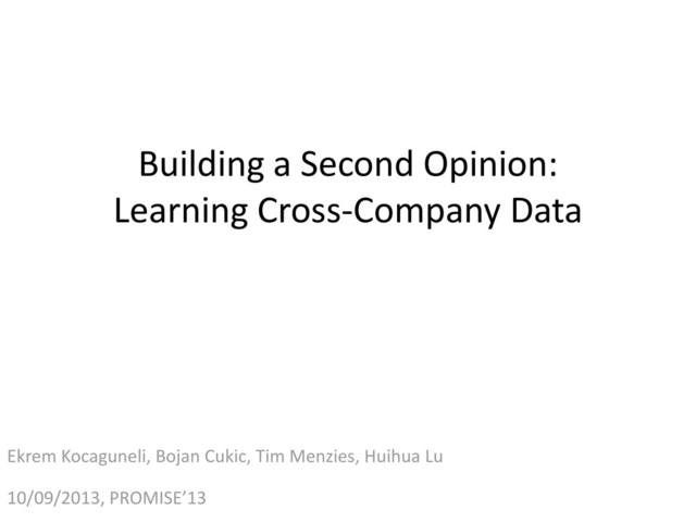 Ray Madachy, "Active Learning and Effort Estimation: Finding the Essential Content of Software Effort Estimation Data," IEEE Transactions on Software Engineering, vol. 39, no. 8, pp. 1040-1053, Aug., 2013 [2] B. A. Kitchenham, E. Mendes, and G. H. Travassos, “Cross versus within-company cost estimation studies: A systematic review,” IEEE Trans. Softw. Eng., vol. 33, no. 5, pp. 316–329, 2007. [3] B. Turhan, T. Menzies, A. Bener, and J. Di Stefano, “On the relative value of cross-company and within- company data for defect prediction,” Empirical Software Engineering, vol. 14, no. 5, pp. 540–578, 2009. [4] Ma, Y., Luo, G., Zeng, X., and Chen, A. (2012). Transfer learning for cross- company software defect prediction. Information and Software Technology, 54(3):248 – 256. [5] Pan, S. J. and Yang, Q. (2010). A survey on transfer learning. IEEE Transactions on Knowledge and Data Engineering, 22(10):1345 –1359. [6] B. Turhan, T. Menzies, A. Bener, and J. Di Stefano, “On the relative value of cross-company and within- company data for defect prediction,” Empirical Software Engineering, vol. 14, no. 5, pp. 540–578, 2009. [7] E. Kocaguneli and T. Menzies, “How to find relevant data for effort estimation,” in ESEM’11: International Symposium on Empirical Software Engineering and Measurement, 2011. [8] Huihua Lu, Bojan Cukic, Mark Culp: Software defect prediction using semi-supervised learning with dimension reduction. ASE 2012: 314-317