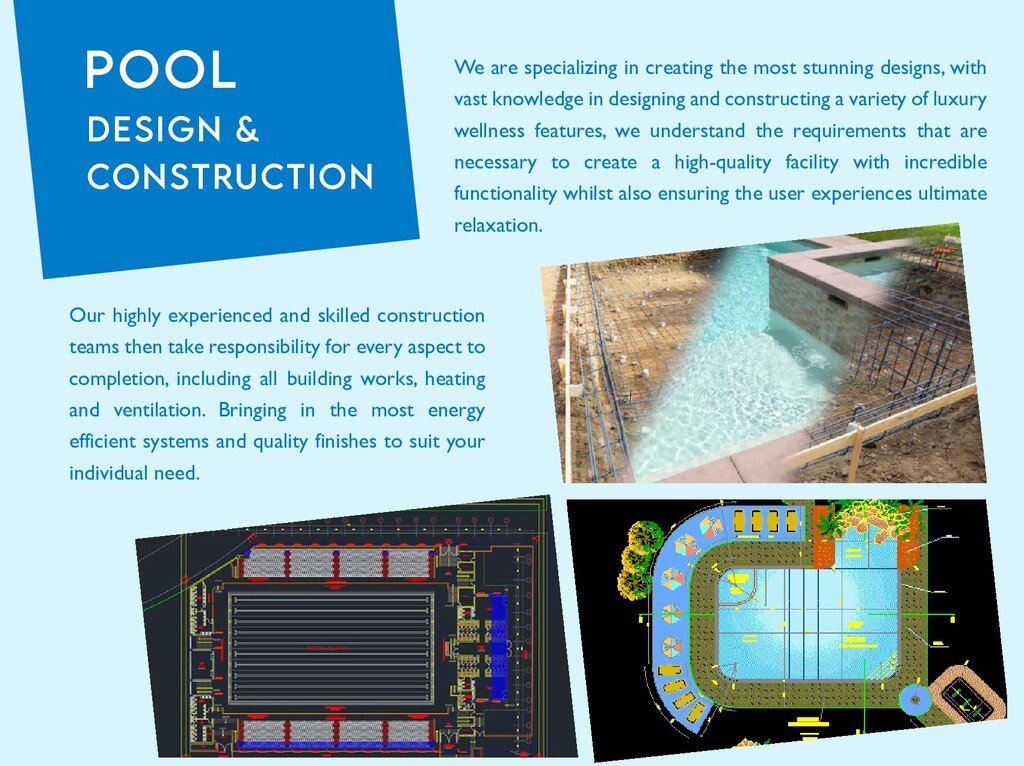 with vast knowledge in designing and constructing a variety of luxury wellness features, we understand the requirements that are necessary to create a high-quality facility with incredible functionality whilst also ensuring the user experiences ultimate relaxation. Our highly experienced and skilled construction teams then take responsibility for every aspect to completion, including all building works, heating and ventilation. Bringing in the most energy efficient systems and quality finishes to suit your individual need. DESIGN & CONSTRUCTION