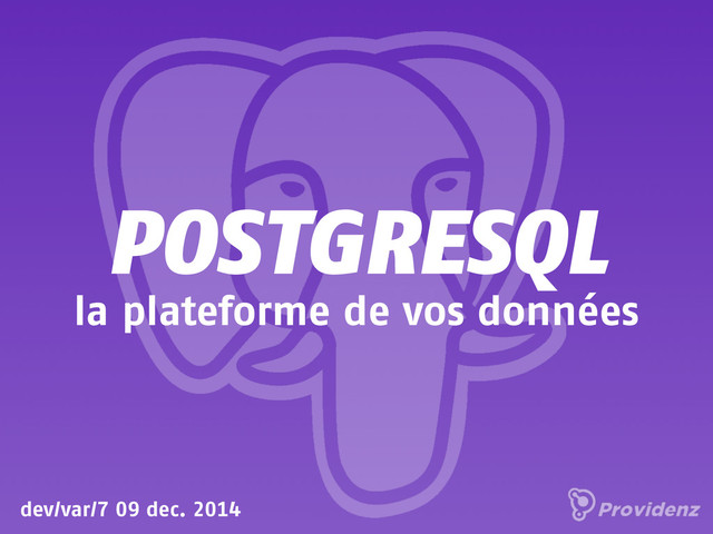 POSTGRESQL la plateforme de vos données dev/var/7 09 dec. 2014