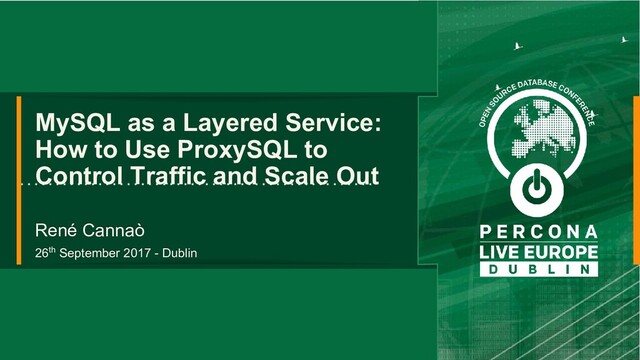 Rene Cannao, ProxySQL author and CEO, discussed usage of ProxySQL for traffic control and scaling out at Percona Live Dublin 2017 on September 26, 2017.