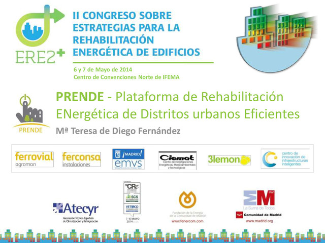 El Proyecto PRENDE ha sido presentado en el II Congreso sobre Estrategias para la Rehabilitación Energética de Edificios, ERE2+ , que tuvo lugar en Madrid los días 6 y 7 de mayo. El objetivo del encuentro era el de transferir e intercambiar conocimientos y experiencias que, desarrolladas en diferentes regiones, contribuyen a promover la rehabilitación energética.