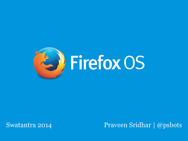 Slides for my talk on Firefox OS in the Free Mobile Platforms track of Swatantra 2014 http://icfoss.org/fs2014/program_details.html#Mobile