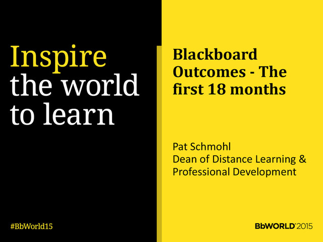 Massachusetts – Located in Central Massachusetts – 5,150 FTE students Fall 2014 – 690 FTE students enrolled in online courses • LMS – Web CT until August 2013 – September 2013 moved to Learn 9.1 SP12 – Current: 9.1 October 2014 CU2 • Last 3 years implemented Bb Learn, Bb Outcomes, Bb Collaborate