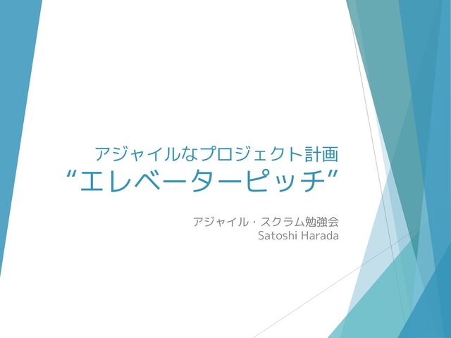 アジャイルなプロジェクト計画 “エレベーターピッチ” アジャイル・スクラム勉強会 Satoshi Harada