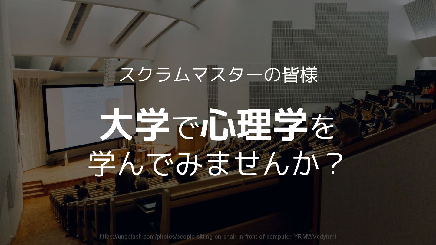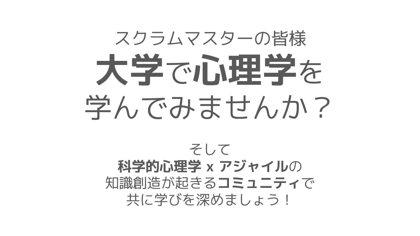 心理学は書籍や自習でも学ぶことはできますが、大学で体系的に学問として学ぶメリットも大いにあります。私の経験をもとに、心理学を大学で学ぶという選択肢を皆様にご提案します。「大学で心理学を学んでみよう」と思い行動を起こすスクラムマスターが1人でも増えることを、この発表では狙いとしています。