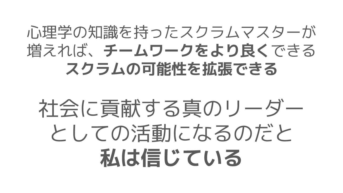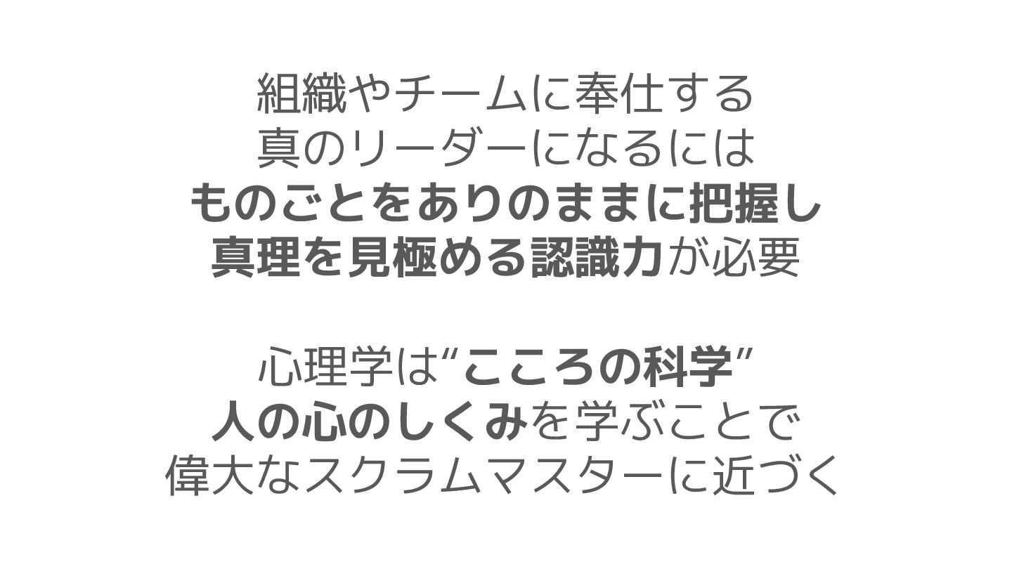 心理学は“心の科学”です。スクラムマスターが“心の科学”を学び活用することで、“偉大なスクラムマスター”に近づくことができるでしょう。