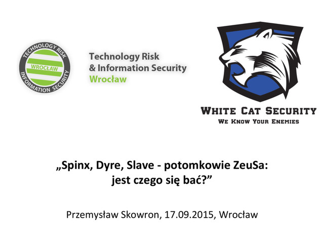 O złośliwym oprogramowaniu atakującym klientów sektora finansowego w Polsce do połowy roku 2015. Jeśli przeglądasz slajdy, prezentacja na pewno wymaga aktualizacji o nowe scenariusze, choć zdecydowana większość jest nadal aktualna.