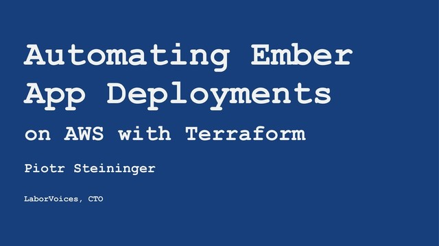 This presentation was given first at Berlin Ember meetup on September 11, 2018. It's a step-by-step walkthrough and an overview of key parts of the code, as well as highlights of how Terraform works and helps manage and maintain AWS (and other) infrastructure.