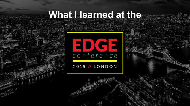 From July 17, 2015, this is a recap of the lessons learnt from the 2015 Edge conference, featuring HTTPS, Security, Front End Data, ServiceWorker, Offline websites and more.