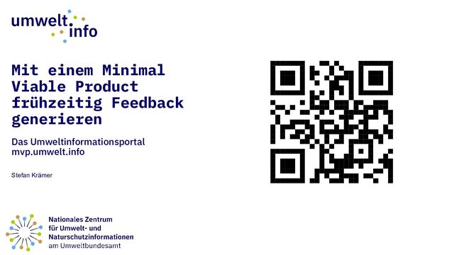 https://gitlab.opencode.de/umwelt-info „Besuchen Sie das Portal. Geben Sie uns Feedback. Arbeiten Sie an unseren Open-Source-Projekten mit.“ Stefan Krämer, Netzwerkarbeit / Governance