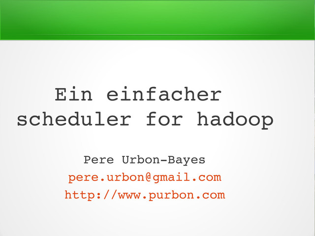 Hadoop jobs, PIG scripts and/or shell scripts. • Have a REST API. • Support workflow, but also cron alike jobs. • Be able to run jobs on demand. • Be able to track running jobs. • Provide live statistics about the running jobs.