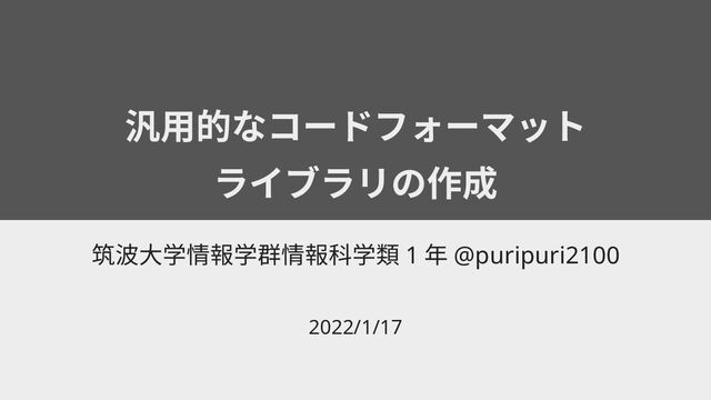 汎用的なコードフォーマット ライブラリの作成 筑波大学情報学群情報科学類 1 年 @puripuri2100 2022/1/17