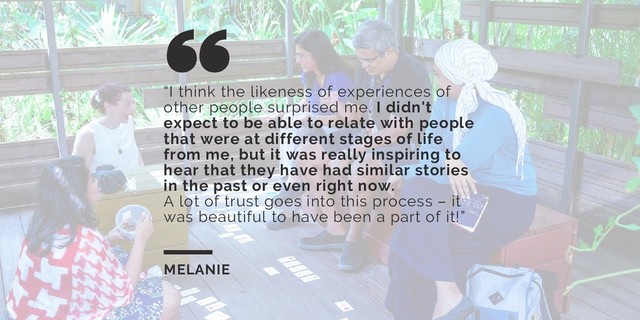 me. I didn't expect to be able to relate with people that were at different stages of life from me, but it was really inspiring to hear that they have had similar stories in the past or even right now. A lot of trust goes into this process – it was beautiful to have been a part of it!” MELANIE