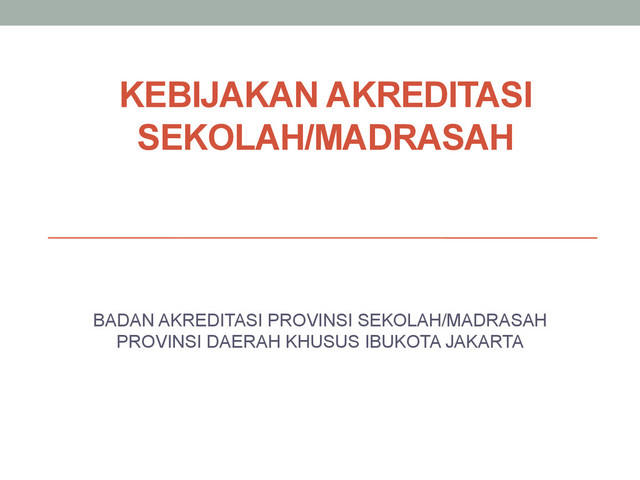 diri bahwa mereka memperoleh pendidikan yang baik, dan harapannya, sertifikat dari sekolah/madrasah yang terakreditasi merupakan bukti bahwa mereka menerima pendidikan bermutu. • Bagi pemerintah hasil akreditasi dapat dijadikan sebagai bahan pertimbangan dalam menyusun kebijakan peningkatan mutu pendidikan nasional