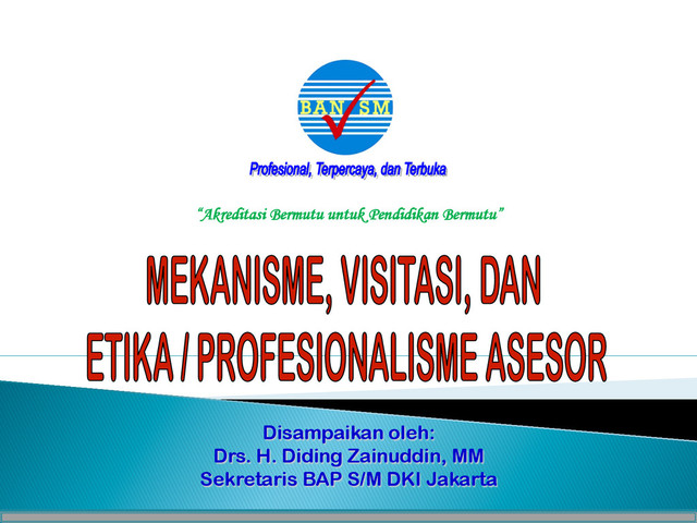 Materi sosialisasi akreditasi sekolah/madrasah yang di dalamnya memuat pelaksanaan visitasi dan etika dalam pelaksanaan visitasi sekolah/madrasah akreditasi 2015.