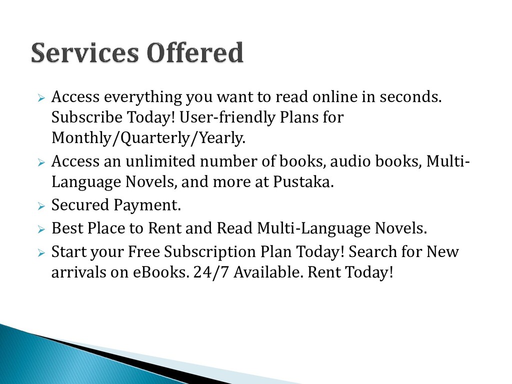 Rent & Read eBooks Online - Enjoy Pustaka's Online Library For Free Trial Subscription.