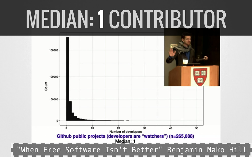 friendly, caring rejection. Aspiring to Concensus-Based Perfection (rather than minimum viable product) HOW FOSS IS DIFFERENT P a r t i c u l a r l y i n f a m o u s p r o j e c t s : f r e e ⊄ i d e a l