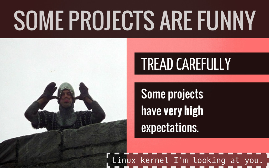strengths Have realistic expectations Talk to the project! MY FIRST CONTRIBUTION F i r s t t i m e : L i k e d i n n e r p a r t i e s a n d m a r a t h o n s d o n ' t a t t e m p t s o m e t h i n g y o u ' v e n e v e r d o n e b e f o r e .