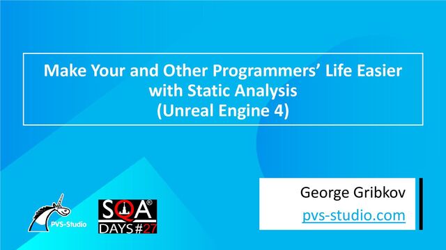 Make your and other programmers' life easier with static analysis (Unreal Engine 4)
