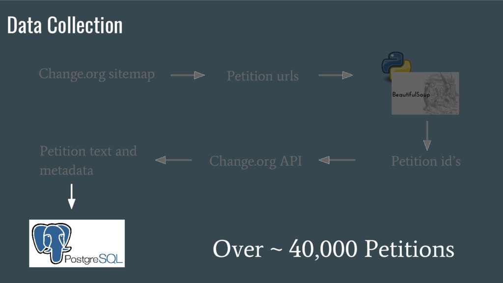 4. Over ~ 40,000 Petitions Data Collection Petition urls Petition id’s