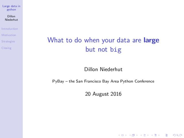 What to do when your data are large but not big Dillon Niederhut PyBay – the San Francisco Bay Area Python Conference 20 August 2016
