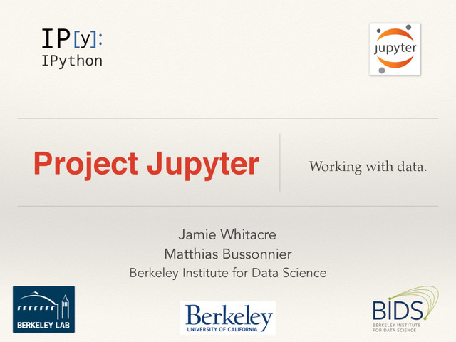 Jamie Whitacre is the technical project manager for Project Jupyter, an open-source scientific computing and data science ecosystem used extensively in academia and industry. Project Jupyter operates out of the Berkeley Institute for Data Science (BIDS) at UC Berkeley. Matthias Bussonnier is a postdoctoral researcher at BIDS and a core developer for Jupyter and IPython.