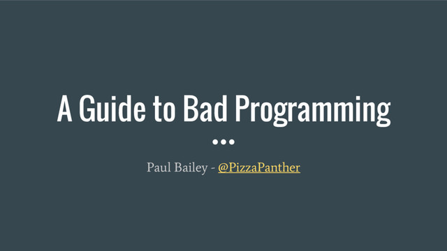 In a sea of talks and information about how to improve your coding skills, this talk will make a case for bad code in your everyday life. In this talk you'll learn how and why you should write bad code.