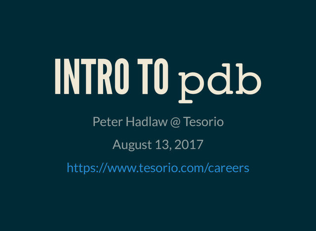 INTRO TO pdb Peter Hadlaw @ Tesorio August 13, 2017