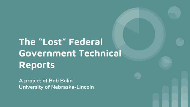 Robert L. Bolin has discovered 100K Federal Technical reports that are not digitized and not indexed online. He proposes using Python to deconstruct and parse the PDF version of the index and create a modern library index giving people intellectual access to those reports.